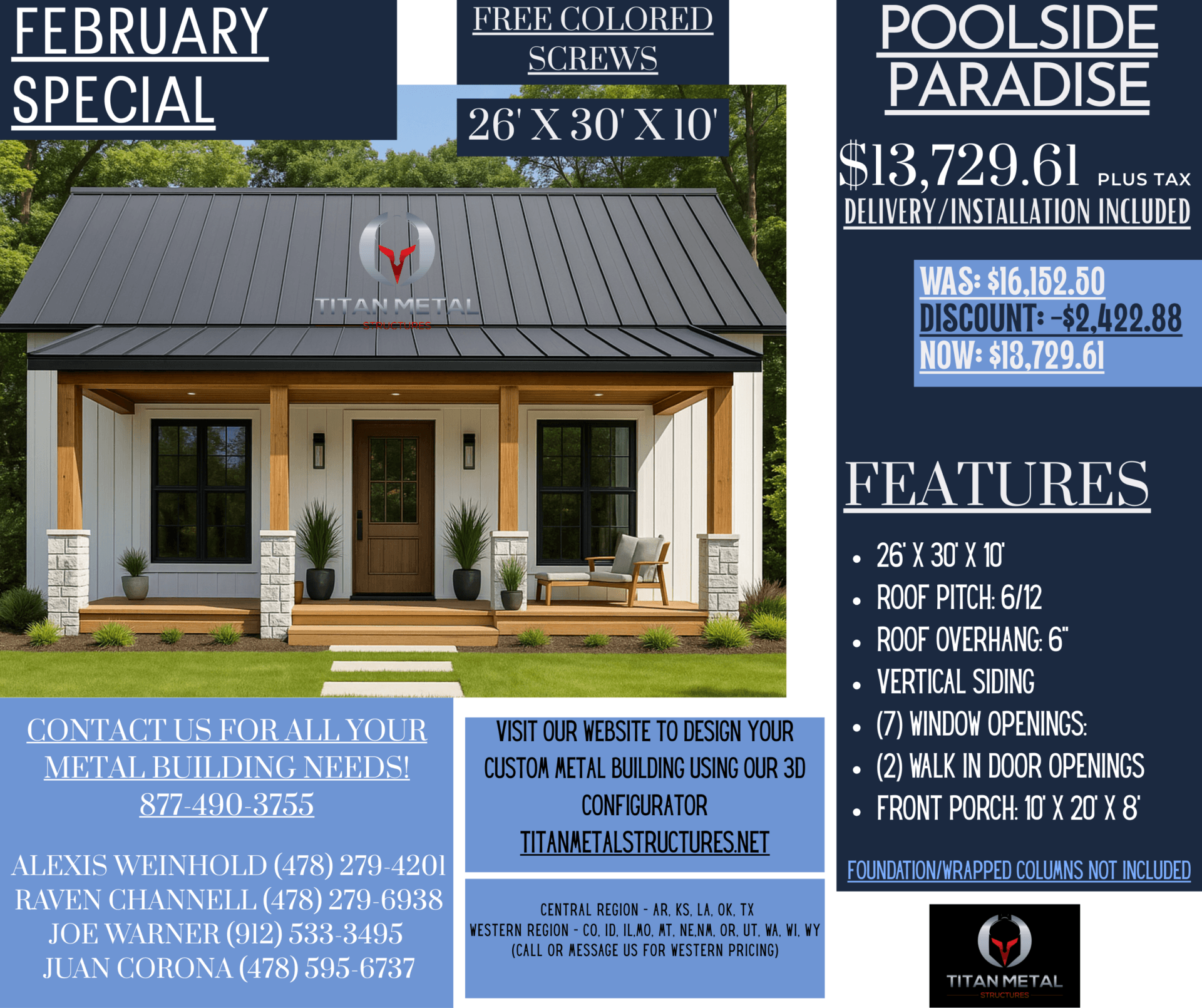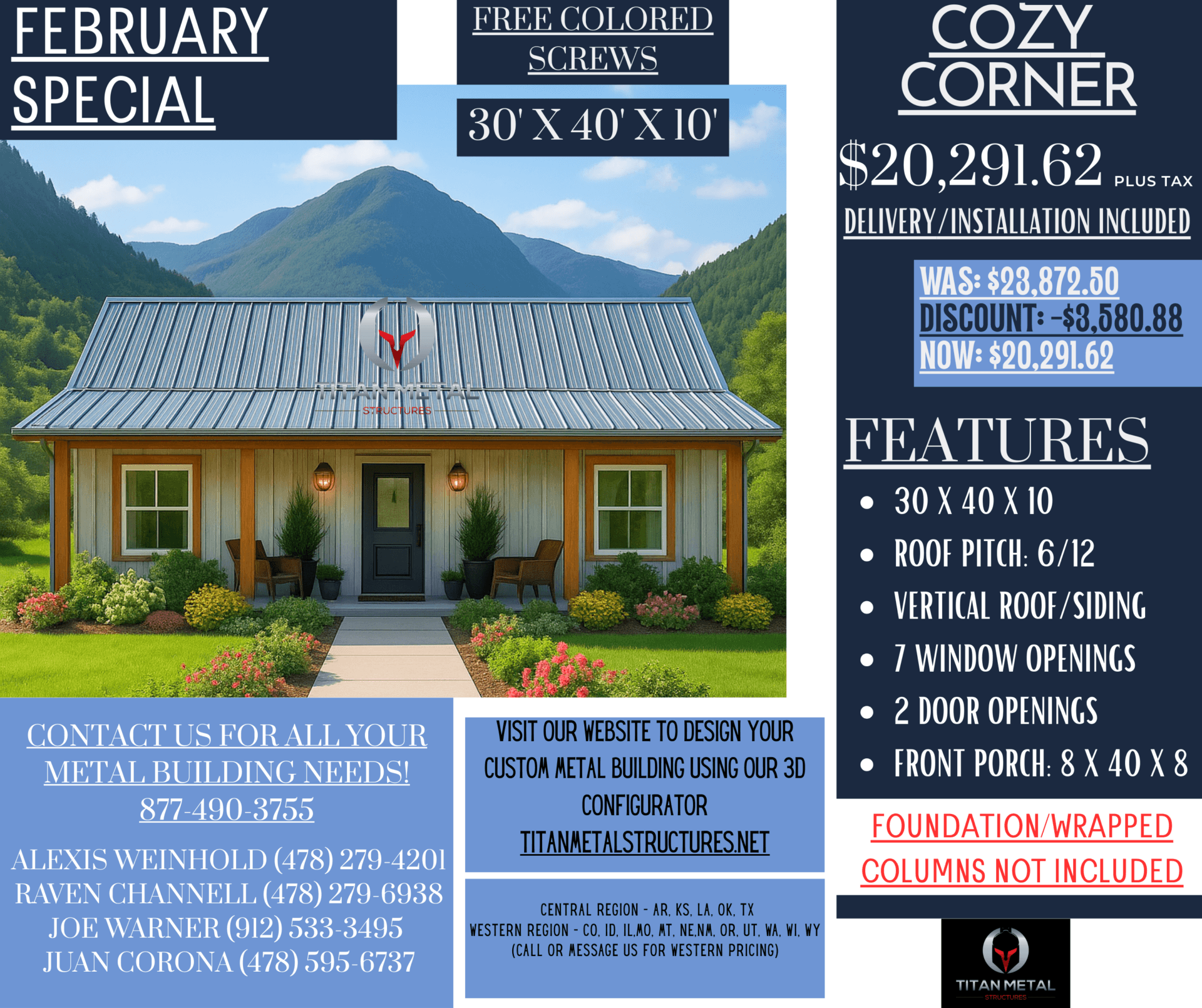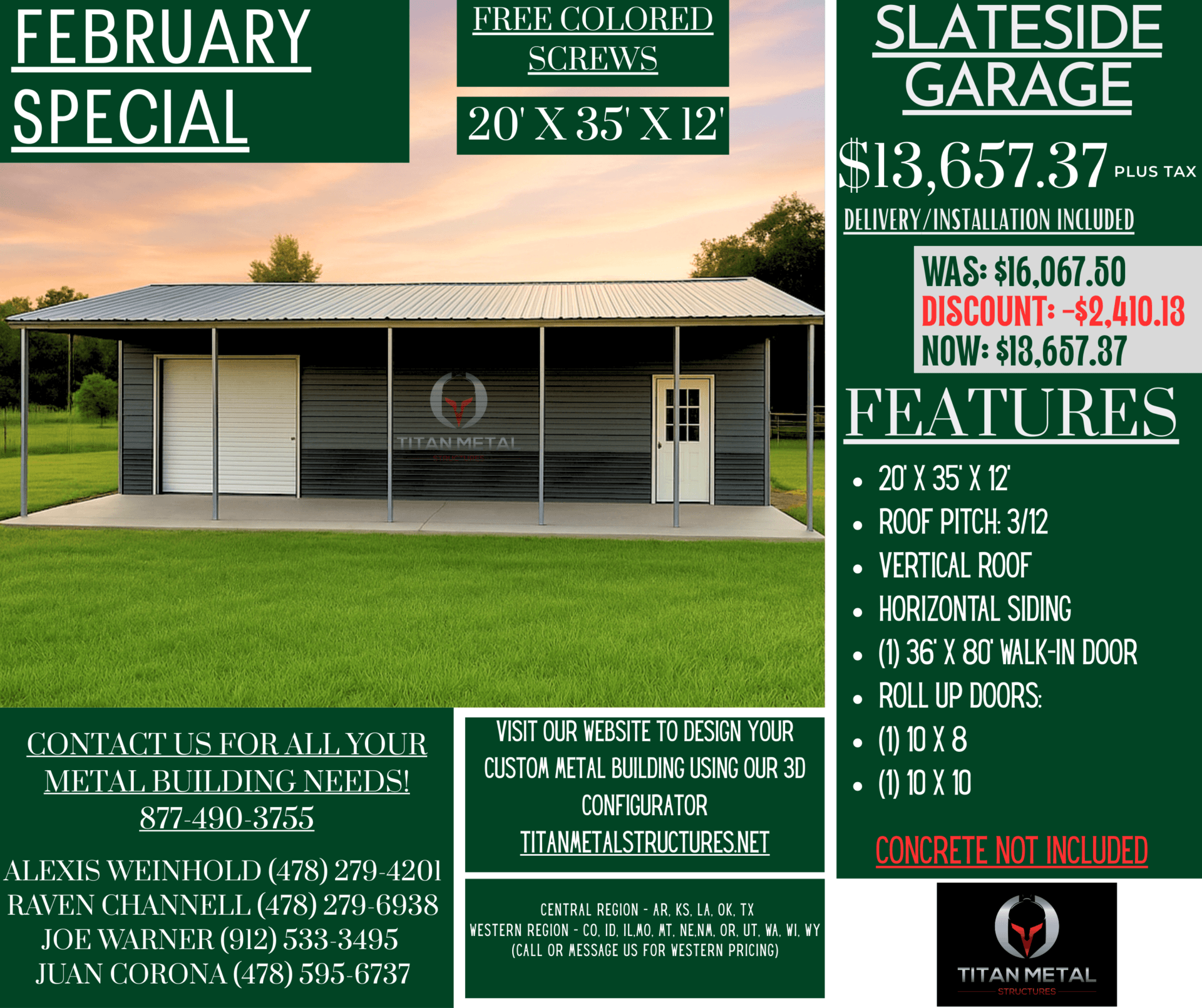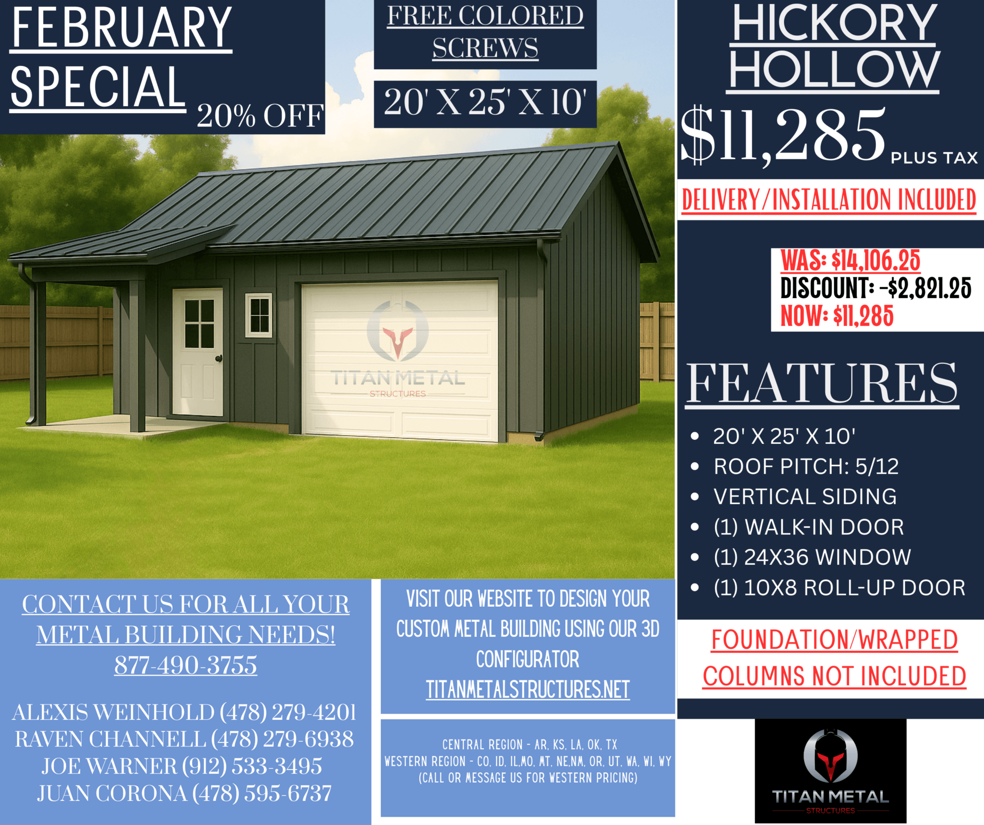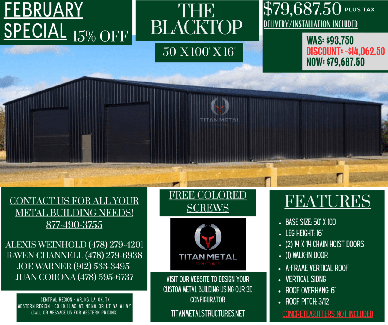 recommendsWhen I was shopping for a metal structure, Titan Metal Structures of Georgia had the most competitive pricing. I… inquired on their website, and even designed my own structure. When I had questions, Caitlin answered them all! She was extremely knowledgeable and helpful throughout the process. She was wonderful to work with…it was a win-win! If you are in the market, I would highly recommend Titan Metal Structures of Georgia, and ask for Caitlin!read more